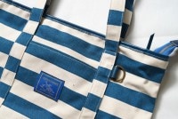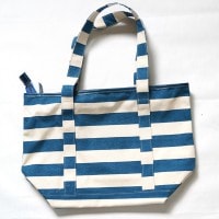 【革蛸アウトレット】ボーダー柄布製トートバッグ/スモールサイズ/ブルー【サンプル】【未使用】