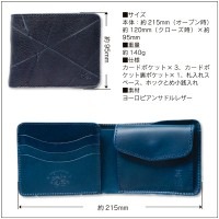 カードポケット×3、カードポケット裏ポケット×1、札入れスペース、ホックとめ小銭入れ