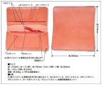 ■仕様 riri製ファスナー&革製引き手付き小銭入れ×1、札入れスペース、ポケット大×2、ポケット中×1、ポケット小×1、カードポケット×5、ウォレットチェーン装着用真鋳製カン×1